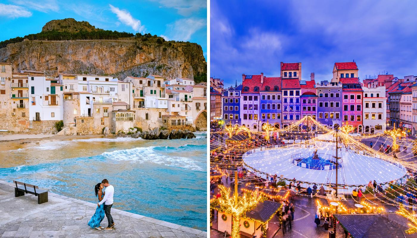 Para quienes buscan destinos navideños poco convencionales, Sicilia es una excelente opción. La mayor isla del Mediterráneo te da la bienvenida en cualquier momento del año, si bien en Navidad es un poco más emocionante. Puedes arrancar tu ruta en Palermo, la capital, donde te espera un bonito casco histórico. En tu recorrido por Sicilia, tendrás la oportunidad de contemplar la faceta más navideña de poblaciones con encanto como Catania, Erice o Cefalú. Completa este viaje de postal con una panorámica del volcán Etna.